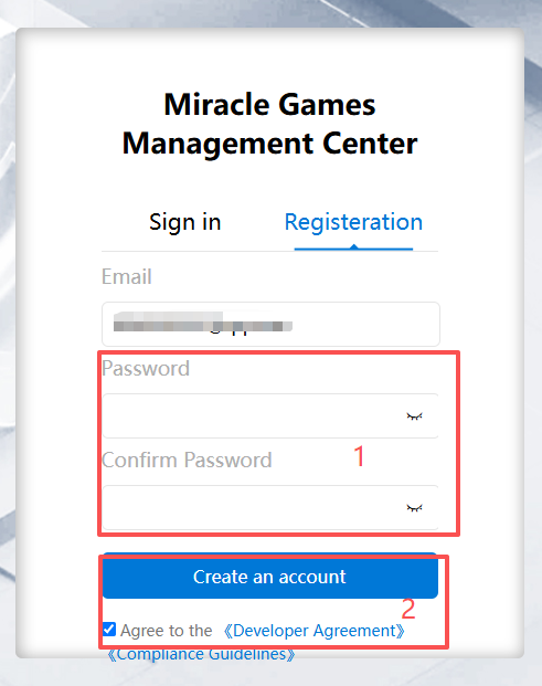 Enter your password, click “Create an Account,” and your registration will be complete.