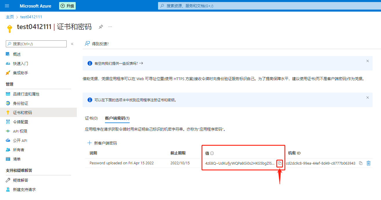 从2022年4月份开始创建的应用,获取应用程序机密的方法与之前不同